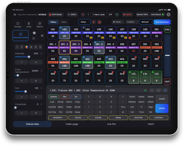 Everything comes to be controlled via DMX, CRMX and wireless connection. All with a single Blackout system.